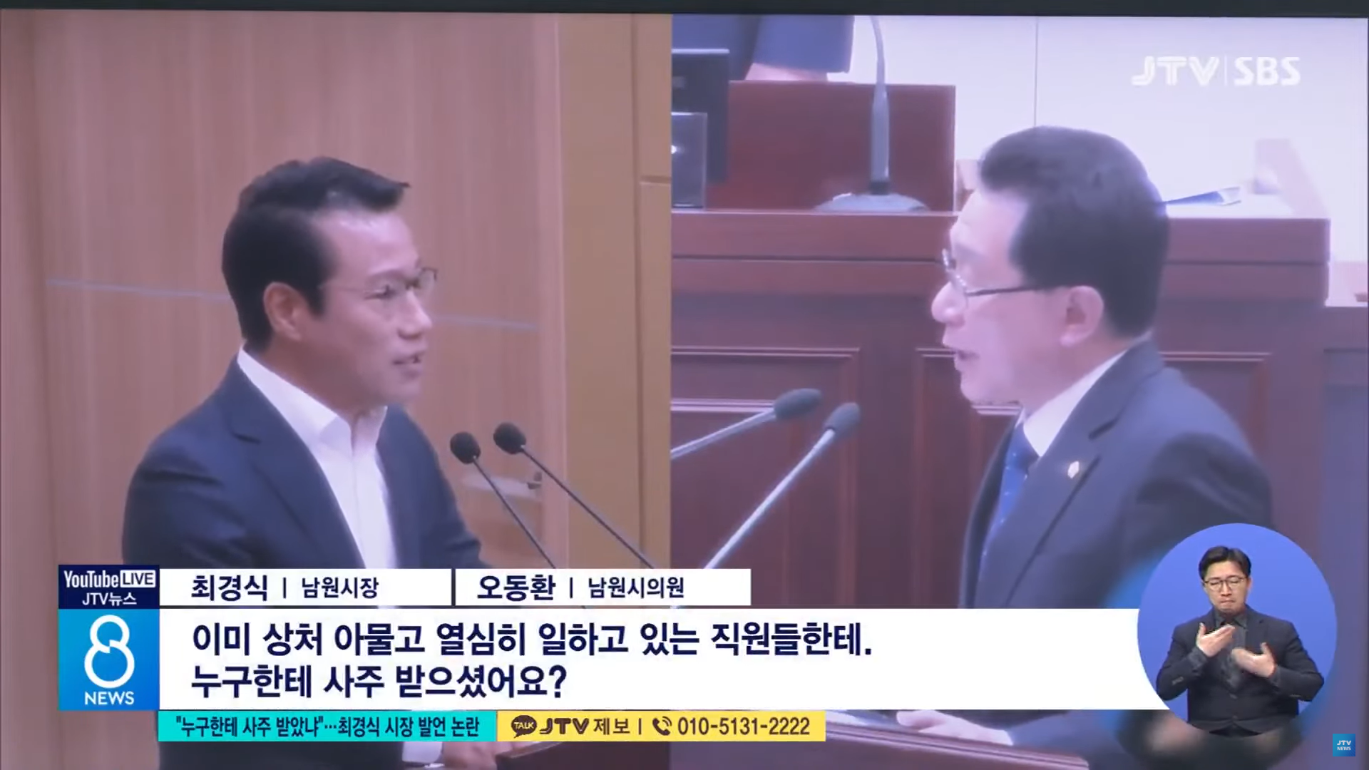 22일 JTV전주방송 보도에 따르면 최경식 남원시장은 “의원님이 인사권 갖고 계세요? 의원님이 인사권을 갖고 계시냐고요. 그러면 의원님이 시장하세요.”, “의원님이 말씀하시면 제가 줄여야 돼요? 진짜 어이없네.”, “이미 상처 아물고 열심히 일하고 있는 직원들한테. 누구한테 사주 받으셨어요?” 등의 발언을 하며 감정적인 모습을 보였는데요, 일부 시의원들의 반발에 회의가 중단되기도 했습니다.