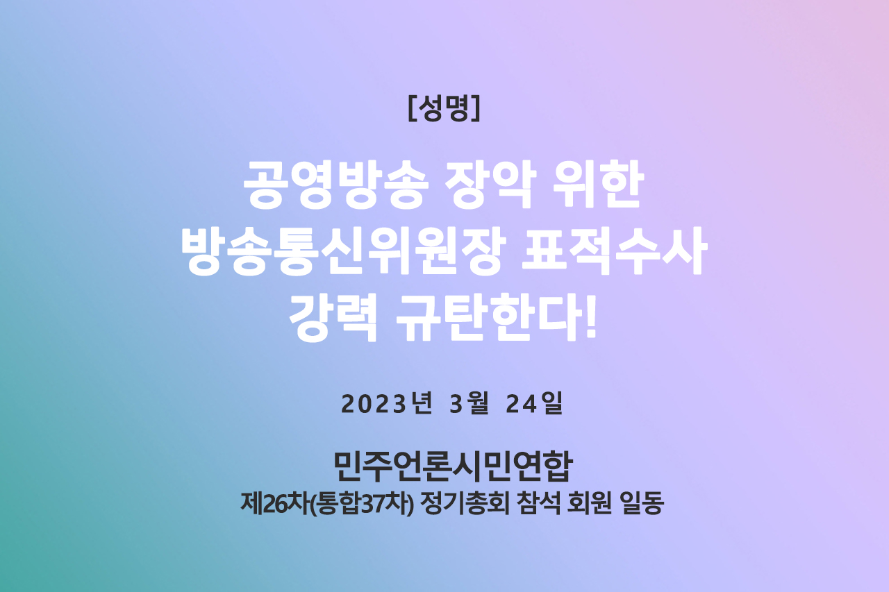 [(사)민언련 성명] 공영방송 장악 위한 방송통신위원장 표적수사 강력 규탄한다! (2023.03.24.)