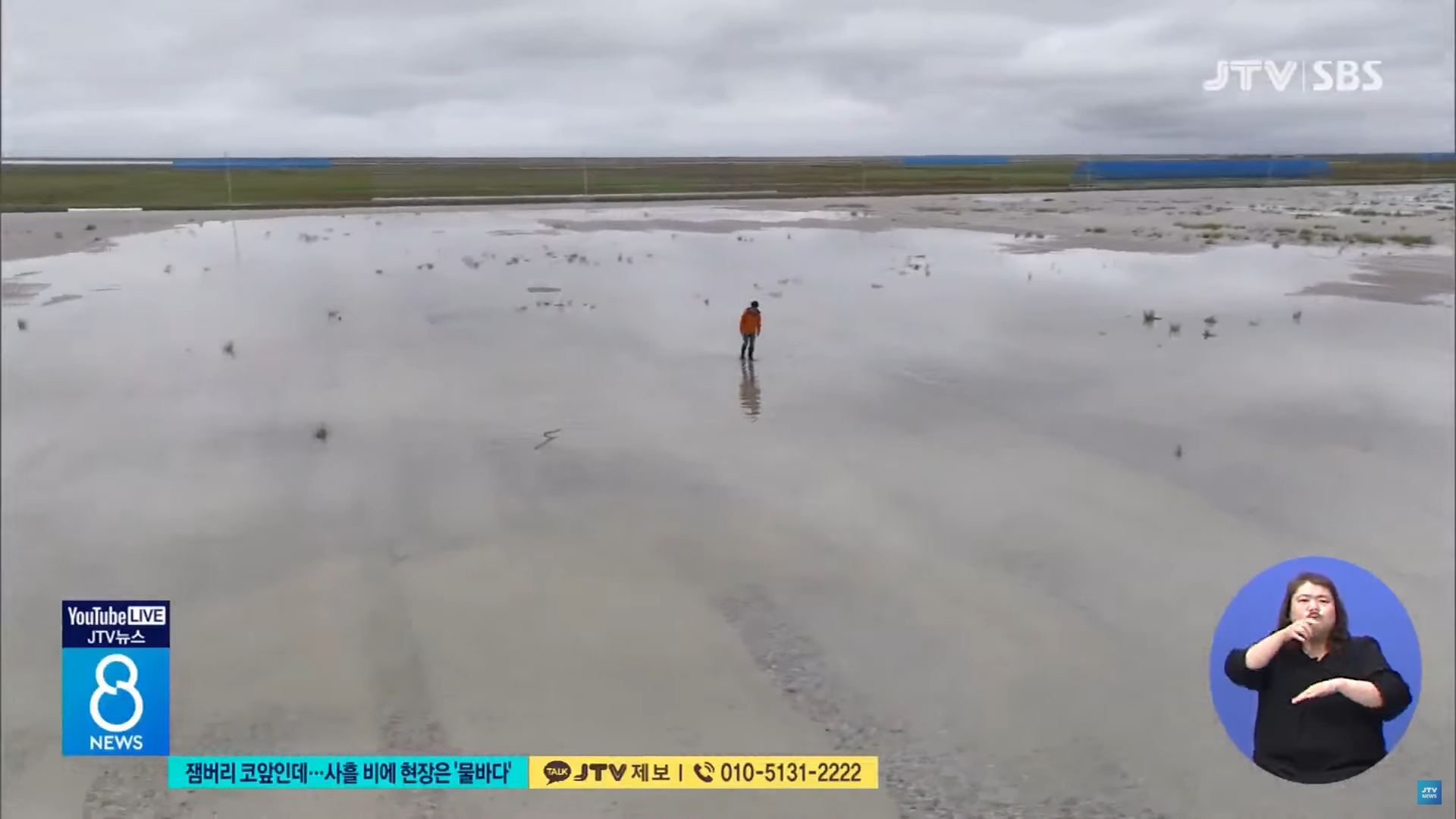 지난 8일 KBS전주총국과 JTV전주방송이 물바다로 변한 잼버리 야영장 부지 문제를 취재해 보도했습니다. 지난해 7월 19일 JTV전주방송이 <호우에 곳곳 물바다...내년 대회 어쩌나?> 기사를 통해 문제를 지적한 적이 있었는데 우려했던 일이 또 일어난 것입니다.