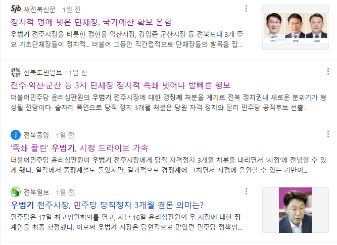 #우범기 전주시장 당직 자격정지 3개월 징계, 지역 언론들의 평가는?