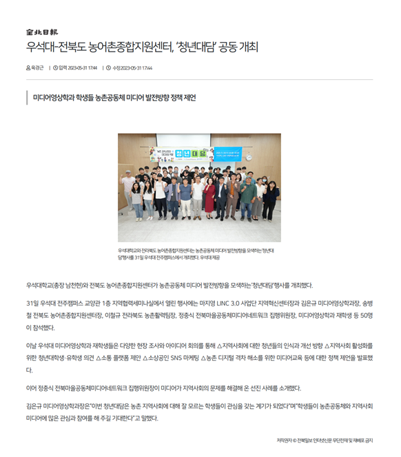 5월 31일 우석대학교에서 "농촌 지역사회와 미디어의 역할"이라는 주제로 대담회가 진행되었습니다.