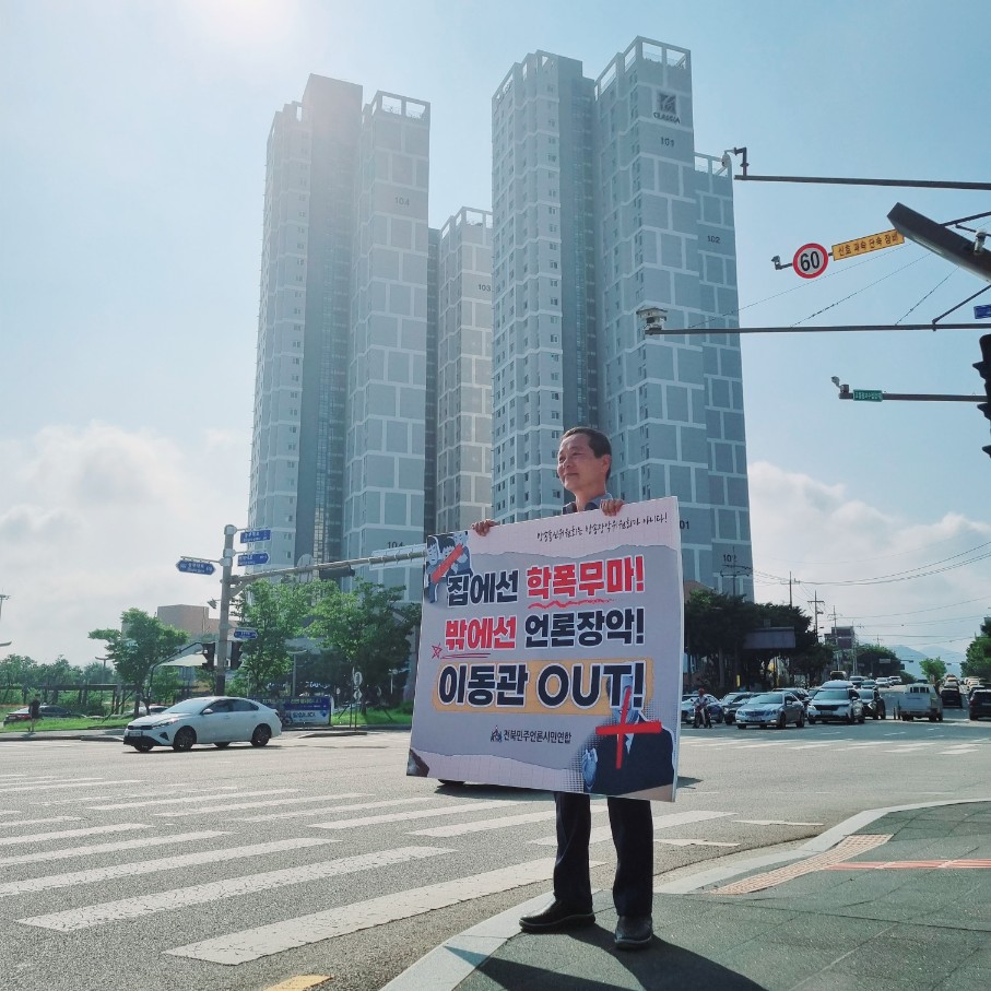 전북민주언론시민연합(전북민언련)과 전국언론노동조합전북협의회(언론노조전북협의회), 전북시민사회단체는 8월 한달 동안 매주 금요일 ‘이동관 방송통신위원장 사퇴 촉구’ 시위를 진행하