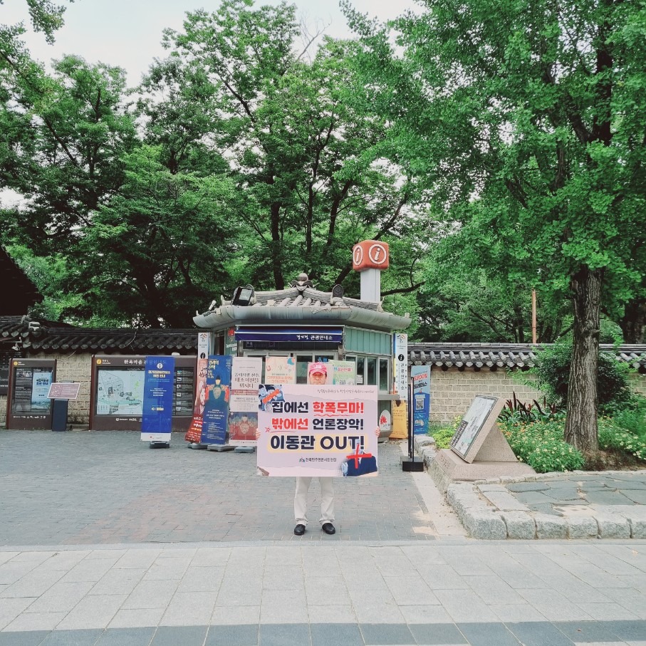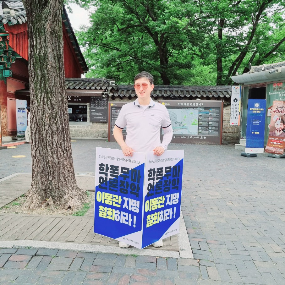8월 매주 금요일은 이동관 방통위원장 지명 철회 촉구 1인 시위의 날입니다.