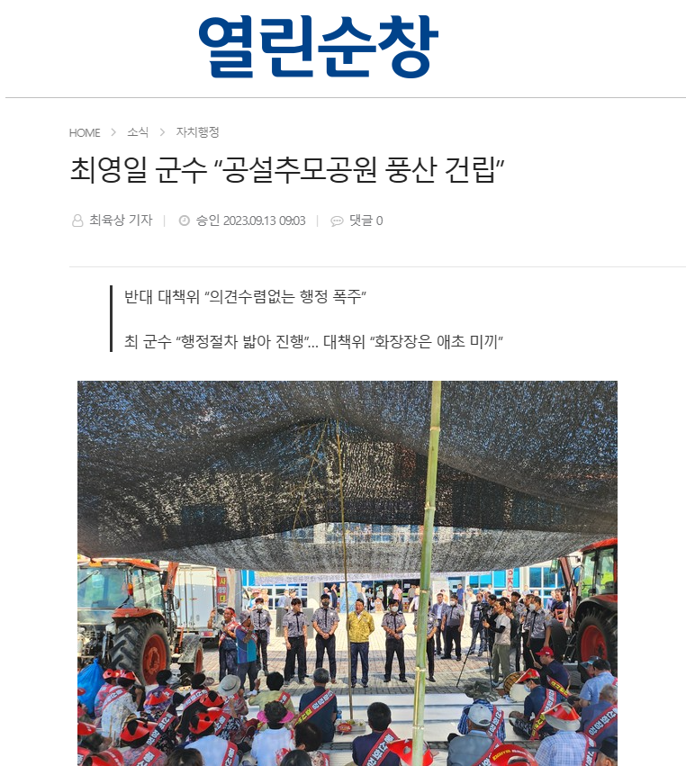 2. 최영일 군수 “공설추모공원 풍산 건립”(9/13, 최육상 취재기자)