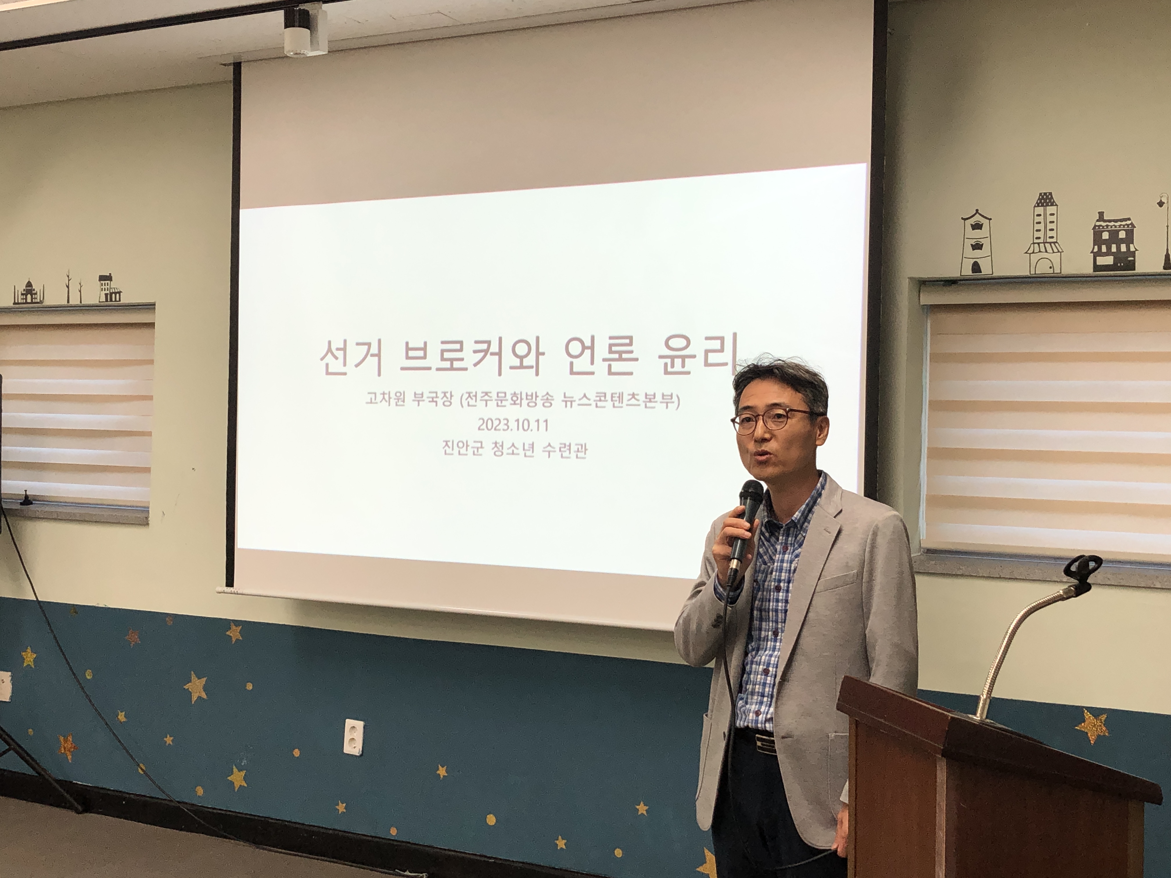 먼저 지난 11일 "선거 브로커와 언론 윤리"라는 주제로 전주MBC 고차원 기자님 강의가 진행되었습니다.
