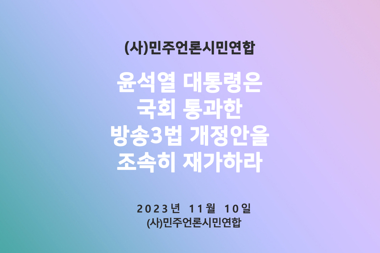 (사)민언련 논평) 윤석열 대통령은 국회 통과한 방송3법 개정안을 조속히 재가하라(20231110)
