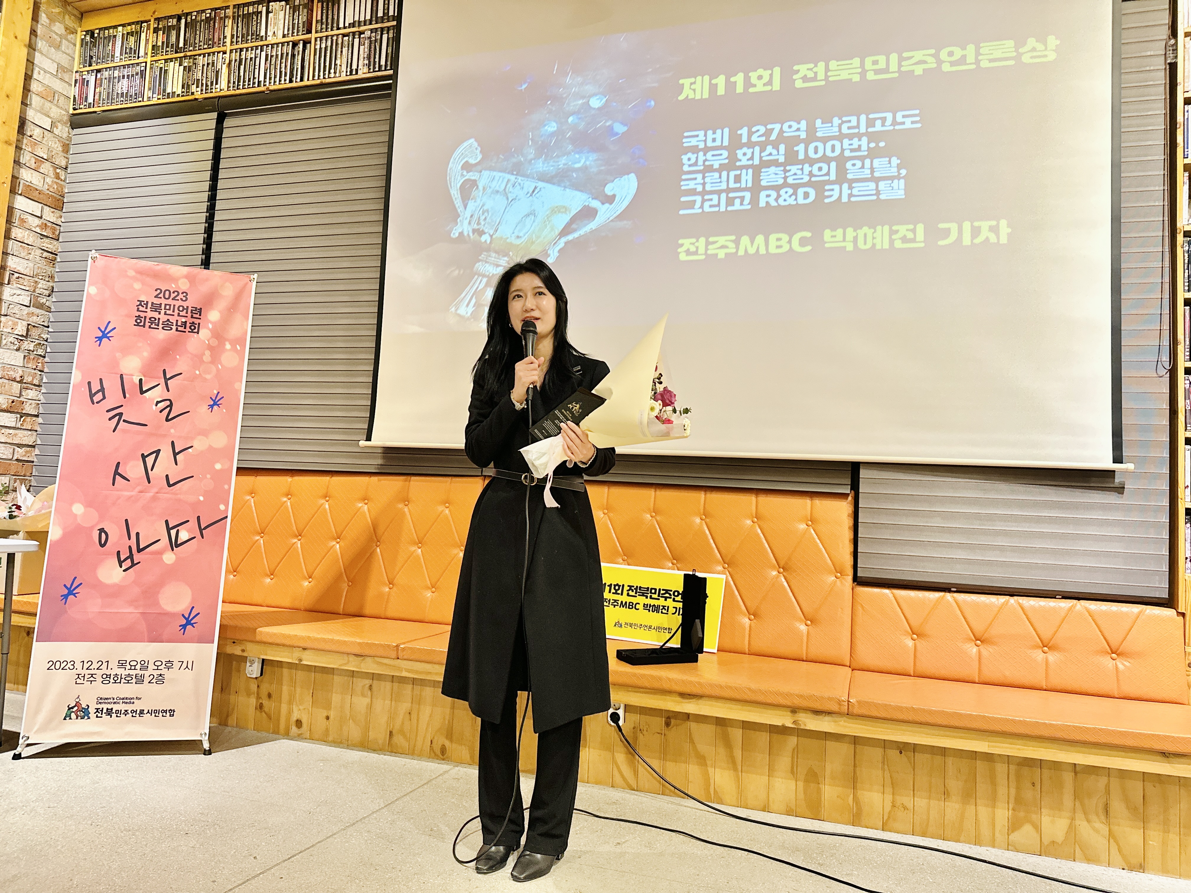 12월 21일(목) 저녁, 전주 영화호텔 2층에서 올해를 보내는 전북민언련 송년회 겸 제11회 전북민주언론상 시상식을 진행했습니다.