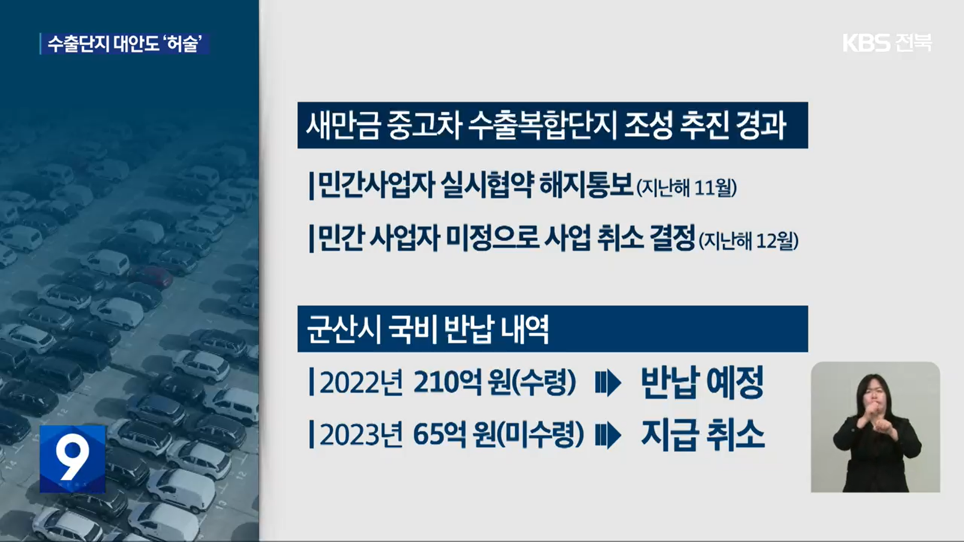 [KBS전주총국] 새만금 중고차 수출단지 무산…전라북도 대책도 ‘주먹구구’(1/15, 조경모)