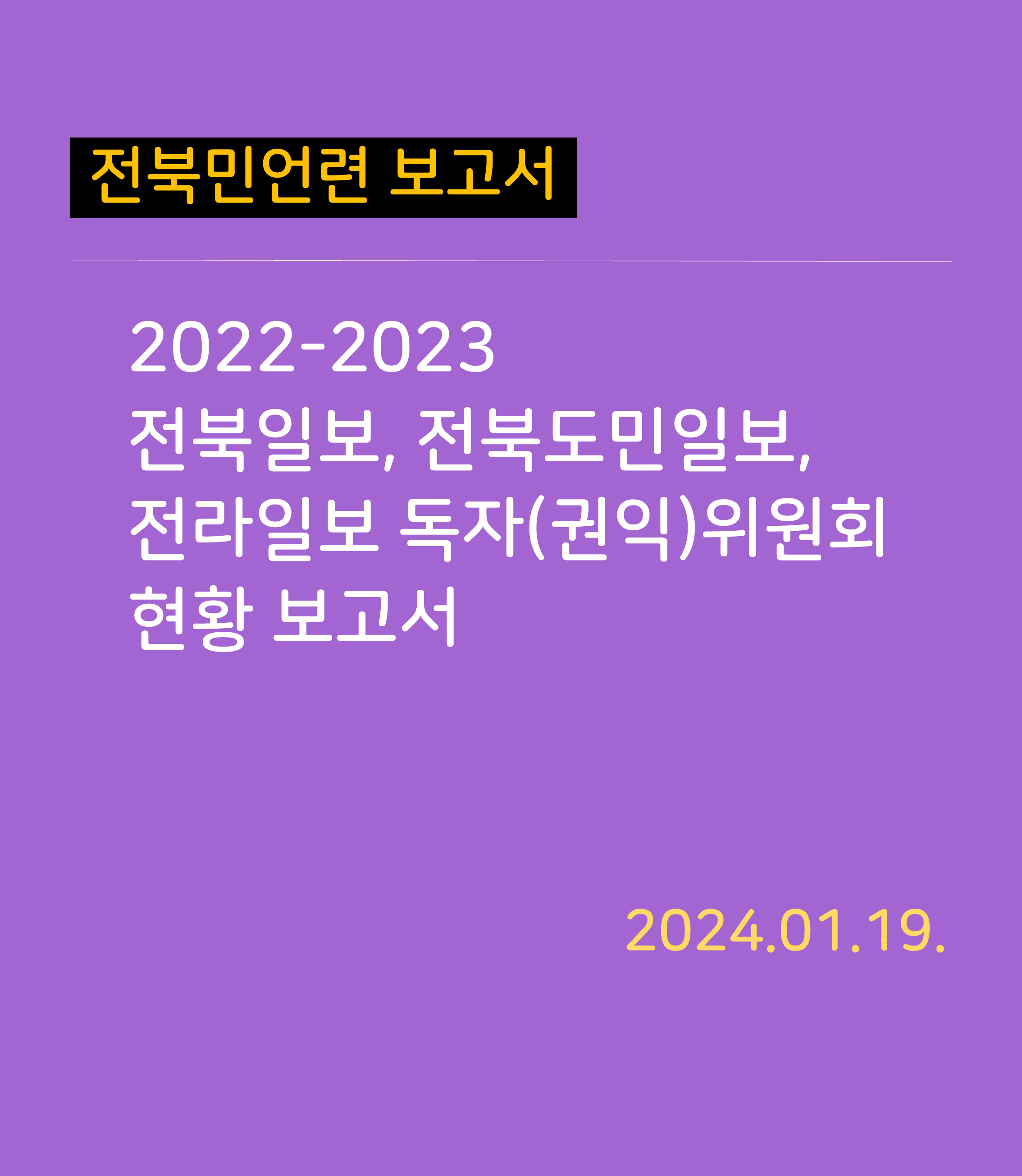 전북민언련에서는 지난 2018년부터 현재까지 전북일보, 전북도민일보, 전라일보 독자(권익)위원회 운영 실태를 각 사에서 보도한 내용을 중심으로 정기적인 분석을 진행하고 있다.