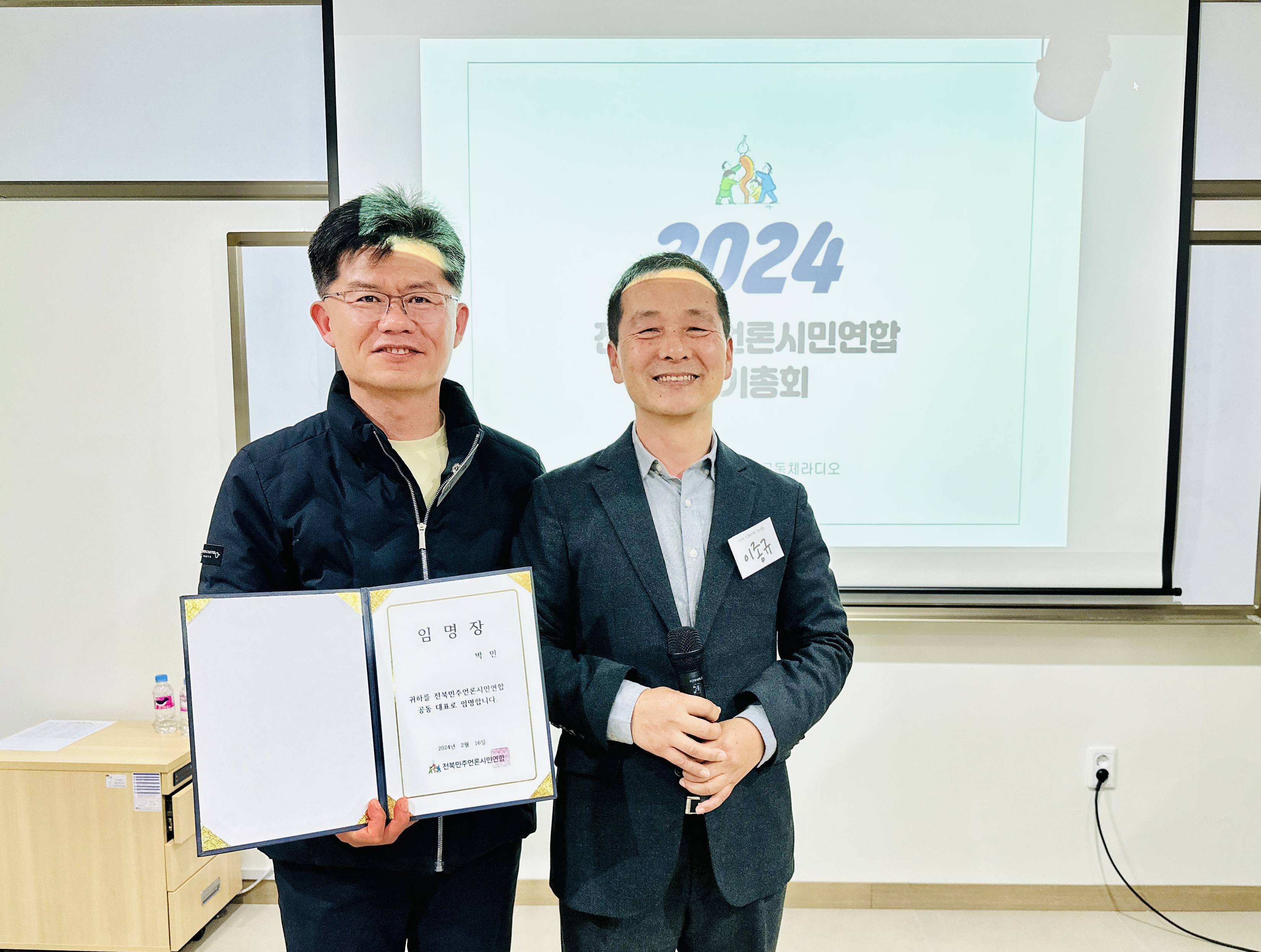 2024년 정기총회가 마무리 되었어요! 올해는 2월 14일 개국한 전주공동체라디오 전주FM 방송사에서 정기총회를 진행했습니다. 2000년대 중반부터 전북민언련에서 시민들의 커뮤니케이션 권리를 확장하기 위한 방안 중의 하나로 소출력 공동체라디오 운동을 진행해 왔었는데요, 올해 전주FM이 개국하면서 많은 분들의 축하를 받기도 했습니다. 총회에 참여하시는 회원들에게 전주FM 스튜디오도 보여드리고, 회의도 진행할 수 있었던 뜻깊은 시간이었습니다.