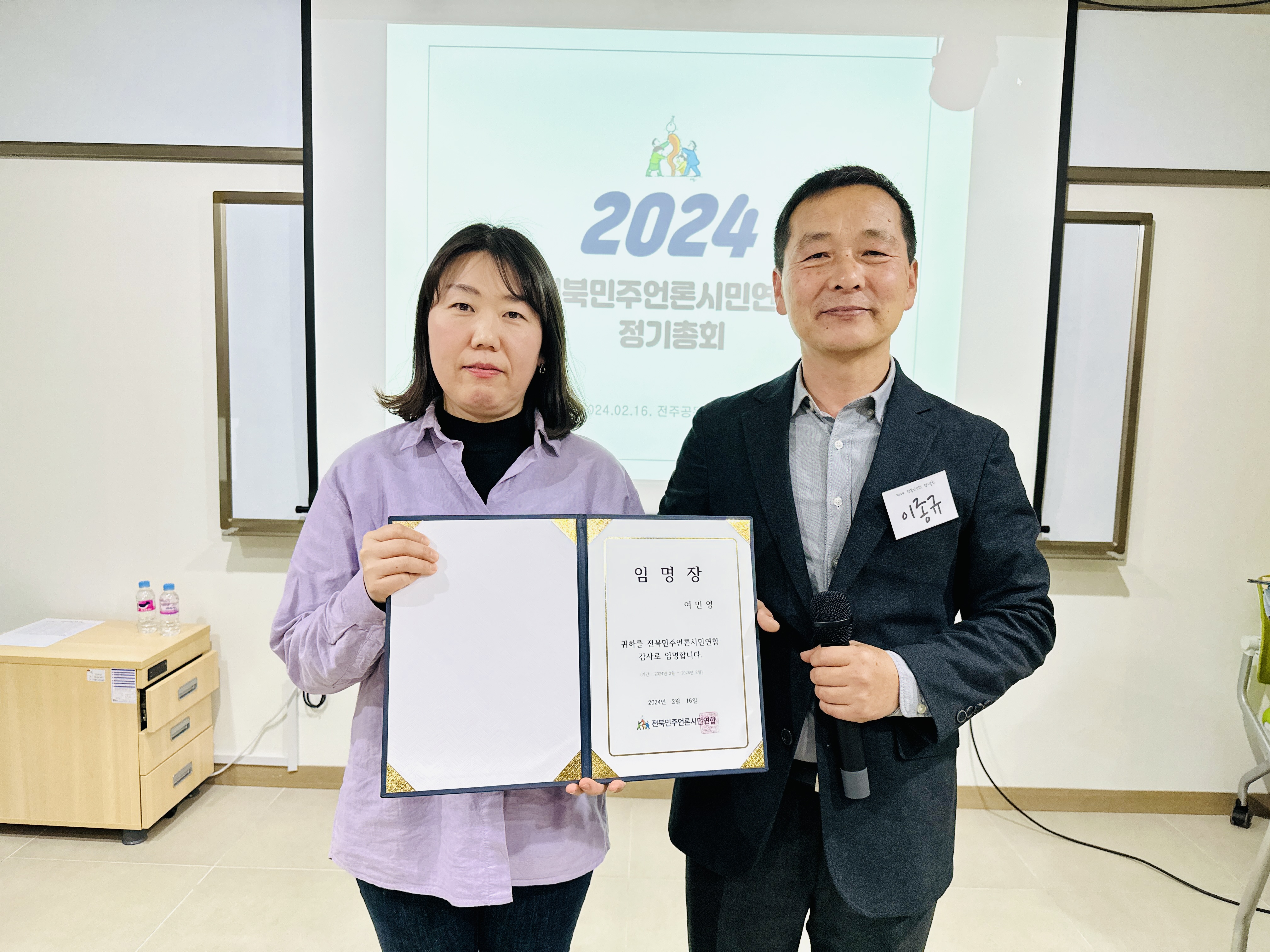 이상훈, 이종규 공동대표는 연임되었고, 박민 전 전북민언련 정책위원장이 공동대표로 신규 선출되었습니다. 또한 정우주, 이평강 이사로 새로 선임되었고, 여민영, 최태호 감사가 새로 선출되었습니다.