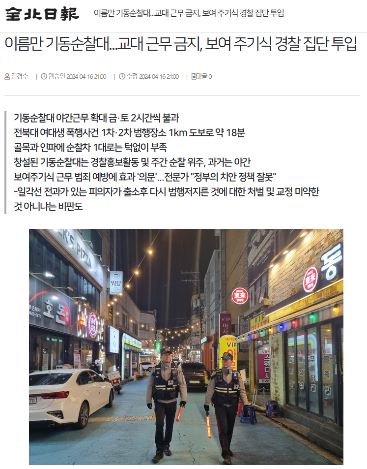 후보 3. 전북 경찰 기동순찰대 제 역할 요구한 보도