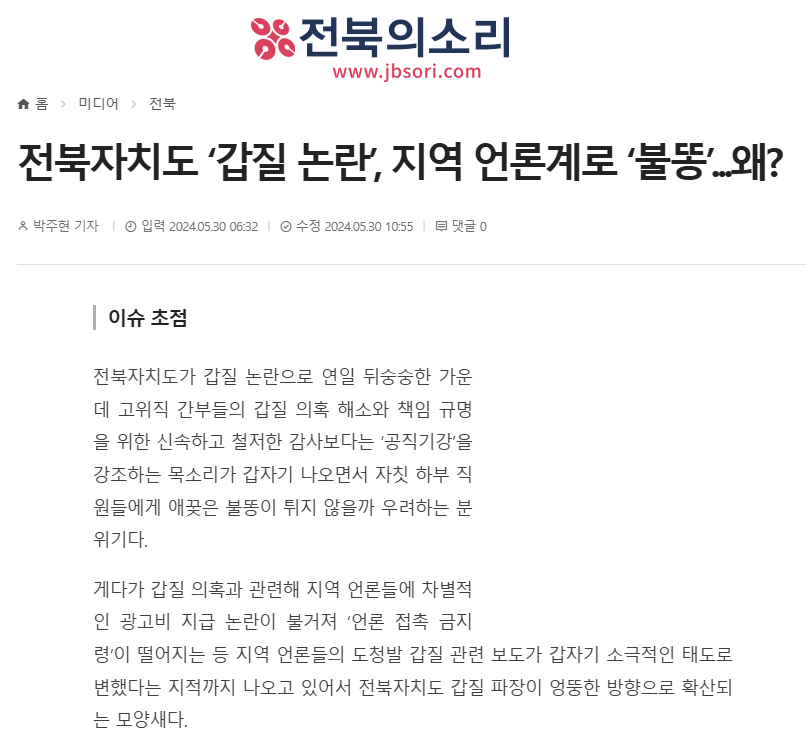 4. 전북자치도 ‘갑질 논란’, 지역 언론계로 ‘불똥’...왜?(5/30, 박주현 취재기자)