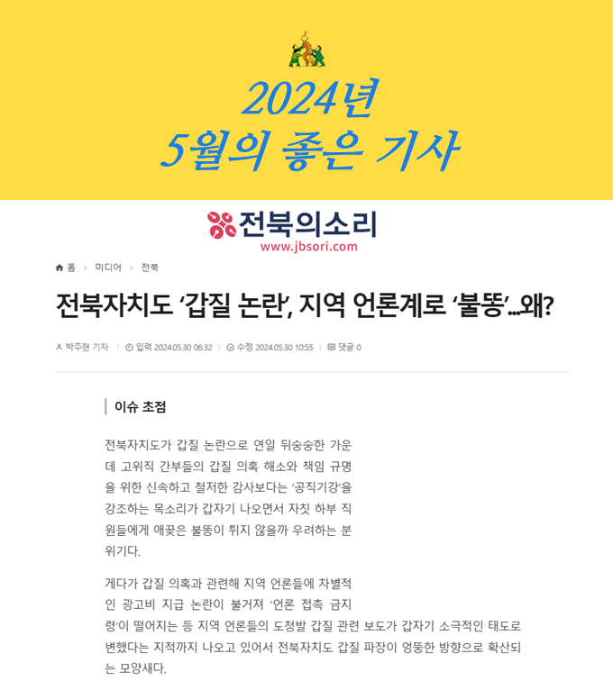 4. 전북자치도 ‘갑질 논란’, 지역 언론계로 ‘불똥’...왜?(5/30, 박주현 취재기자)