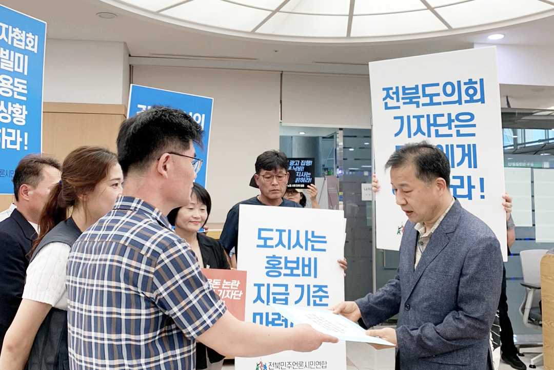 이에 전북민언련에서는  6월 3일 성명을 내고 ▲홍보비 집행 원칙 기준 마련 및 투명성 확보 ▲전북기자협회 연수 상황 점검 ▲전북도의회출입기자단 진상 조사 및 공개 ▲감사위원회 철저한 조사를 요구했습니다.