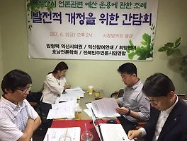 소통/공지·활동 소식 (1025) 썸네일형 리스트형 [보도자료] 익산 언론조례 간담회 개최, 개정방향 3개 도출 익산 언론조례 간담회 개최, 개정방향 3개 도출 운영제한 조항에서 언론사 귀책사유 유지 바람직 심의위원회 신설, 종사자 4대 보험 납부의무 규정 필요 『익산시 언론관련 예산 운영에 관한 조례(이하 익산시 언론조례)』 발전적 개정을 위한 간담회가 지난 6월 2일 에서 열렸다. 『익산시 언론조례』는 2015년 말 익산시의회 초선의원 11명이 전국 최초로 제정해서 그동안 아무런 규정 제한도 받지 않고 지방자치단체장들 임의대로 집행하던 예산에 일정한 집행기준을 마련함으로서 오랜 관행을 개선하는 획기적인 조례라는 평가를 받았다. 이번 간담회는 조례 운영 1년 6개월이 되어감에 따라 그간의 익산시 언론홍보 예산 운용과 조례 운영 성과를 살펴보고, 또한 발전적 개정을 위한 의견 교환 자리를 갖고자 임형택 익산시의원,.. 전북민언련 영화분과 ‘달달’) “강지이 영화감독과 함께 하는 이달의 영화” with 맥주 파티 전북민언련 영화분과 ‘달달’ “강지이 영화감독과 함께 하는 이달의 영화” with 맥주 파티 2017년 5월 31일(수) 오후 7시-10시, 전북민언련 야외테라스 “맥주 파티” 개최 컨셉은 맥주 마시며 보는 ‘영화’입니다. '영화'를 통한 세상 모든 것에 대해 이야기하고자 합니다. 시원한 세계 맥주와 함께 강지이 영화감독이 풀어주는 이달의 영화 모임에 함께하세요^^ 오후 7-9시 : 영화 상영 오후 9-10시 : 강지이 영화감독과 함께하는 이달의 영화 대화 상영예정작 : 런던프라이드 동영상보기 : http://movie.daum.net/moviedb/video?id=88201&vclipId=53953 활동보고) 언론개혁 선전전 (20170428) 2017년 4월 28일 경기전 앞입니다. 언론개혁을 요구하는 목소리를 담아 전국언론노조, 언론노조 전북지부, 민주노총 전북지부, 전북민언련 활동가들과 함께 판넬을 들고 선전전을 진행했습니다. 이후 대선 전 후 언론개혁 운동을 어떻게 할 것인지 시민사회단체와 어떻게 유기적으로 결합할 것인지 의견도 나눴습니다. 감사합니다^^ 연대사업 활동보고) #VoteFor_전북주권자파티 현장 19대 촛불대선 #VoteFor 새로운 대한민국 전북주권자파티 지난 4월 25일 전주중부비전센터에서 전북주권자파티가 열렸습니다. 12개 시민사회단체가 모인 전북시민사회단체연대회의 주관으로 치뤄진 이번 행사에서는 전북지역 유권자들이 주요하게 생각하는 의제에 대한 설문조사 결과 발표도 진행되었습니다. 또한 촛불민심이 요구한 새로운 대한민국은 무엇인지에 대해 의견을 나누는 자리도 이어졌습니다. △ 사진출처 : 뉴시스 (http://news1.kr/articles/?2977669) 아래는 설문조사 결과입니다. 설문조사는 4월 20일부터 24일까지 진행되었으며 약 200여분이 답변해 주셨습니다. 전주MBC에서 이날 행사를 열심히 취재하셨습니다. 전주MBC 뉴스데스크 4월 26일 자 보도입니다. 관련보도: http.. 지역방송의 정상화를 위한 정책제안 기자회견 (20170426) 최순실 국정농단 _사태에 이은 박근혜 대통령의 탄핵은 끝이 아니라 새로운 한국사회 건설을 위한 시작을 의미합니다. 탄핵을 이끌어낸 촛불시민들은 청산해야 할 적폐 중의 적폐로 언론 개혁을 꼽았습니다. “언론도 공범이다”는 구호에서 나타나듯 정치권력과 그 하수인에 장악된 언론의 개혁은 더 이상 미룰 수 없는 과제입니다. 중앙집권적 방송지배구조가 지역방송의 고유성과 독립성을 억압하는 현실 또한 적폐 청산의 핵심과제라고 할 수 있을 것입니다. 한국지역언론학회와 지역민주언론시민연합, 지역방송협의회는 19대 대통령 선거를 앞두고 그 동안 언론개혁 의제 논의에서 배제됐던 지역방송의 정상화를 위한 정책제안을 발표하는 기자회견을 갖고 각 대선후보에게 공개질의서를 발송할 예정입니다. [ 지역방송의 정상화를 위한 정책제안 .. 원탁회의 선언문 및 출범 현장) 언론개혁 없이는 적폐청산도 사회개혁도 이룰 수 없다 △출범 선언 △부문·지역 발언 △전국 민언련 실무자와 함께 원탁회의 선언문 언론개혁 없이는 적폐청산도 사회개혁도 이룰 수 없다 지난겨울 주권자들은 삭풍도 마다하지 않고 주권 회복을 위한 싸움에 기꺼이 나섰다. 그 결과 국정농단 세력들은 권좌에서 쫓겨났고, 구치소에 갇히는 신세로 전락했다. 박근혜·최순실 게이트로 촉발된 박근혜 탄핵은 무소불위 제왕적 권력자도 결코 국민을 거스를 수 없다는 위대한 역사적 교훈을 재확인했다. 촛불대선이 치러지는 지금, 주권자들은 이명박·박근혜 정권의 적폐를 청산하고 새로운 대한민국 건설을 간절히 염원하고 있다. 한국사회는 이명박·박근혜 정권의 적폐를 청산하느냐 못하느냐에 따라 국민들이 주권자로 거듭나느냐 아니냐의 갈림길에 서 있다. 촛불시민은 박근혜․최순실 사태에 ‘언론도 공.. #VoteFor 새로운 대한민국, 2017대선주권자전북행동 출범 #VoteFor 새로운 대한민국, 2017대선주권자전북행동 출범 1. 2017년 5월 9일 치러질 대통령선거를 앞두고 전북지역의 12개 시민사회단체가 참여하고 있는 전북시민사회단체연대회의가 을 구성하고 출범했습니다. 2. 은 오는 19대 대통령 선거가 국정농단으로 얼룩진 박근