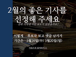 자료/이달의좋은기사·전북민주언론상 (267) 썸네일형 리스트형 2016년 2월의 좋은 기사 2016년 2월의 좋은 기사 전북민주언론시민연합은 매달 좋은 기사를 선정하고 이후 시민의 의견을 100% 반영하는 ‘시민이 뽑은 좋은 기사 상’을 수여합니다. 지역의 좋은 기사를 적극적으로 시민께 알리고 지역 언론이 타성에 젖은 기사, 시민과 유리된 기사를 쓰지 않도록 감시하는 것이 목적입니다. 시민들이 지역 언론에 관심을 갖는 만큼 지역 언론도 더욱 좋은 기사를 쓸 거라고 기대합니다. ○ 작성 기자 : 전주MBC 유룡기자 ○ 관련 보도 :공항리무진 독점 운행 폐해 2/16특혜만 누리고 공익은 뒷전 2/12공항버스 또다시 운행 중단 2/11 ○ 선정 이유 :전주에서 인천공항까지 가는 공항리무진을 운영하는 대한관광. 이 기업의 독점 운행 문제를 다른 방송사보다 심도 있게 연속으로 보도했다. 기업이 취득한 .. 2016년 2월의 좋은 기사를 뽑아주세요 관련 보도 -후보작1. 전주MBC직원 수당 조합장에 상납(R) 기자 : 김아연 | 일자 : 2016년 2월 26일 ◀ANC▶ 전북인삼농협이 개인 판매상에게 농협간판을 내걸도록 하고 폭리 장사도 묵인하고 있다는 보도, 어제(24) 전해드렸는데요. 전북인삼농협의 문제 이 뿐만이 아니었습니다. 조합장이 직원들의 연월차 수당 일부를 상납받은 사실도 드러났습니다. 김아연 기자입니다. ◀END▶ ◀VCR▶ 지난 1월 초 연월차 수당을 지급받은 전북인삼농협 직원들. 그런데 각 부서장들로부터 수령액의 10%를 떼서 내라는 통보를 받습니다. 수당을 걷어서 조합장에게 주기로 했다는 겁니다. 간부들은 당시 조합장이 연차수당을 지급하지 않으려 하자, 결재를 받기 위해 이같은 결정한 한 것으로 알려졌습니다. 부당한 요구였지만,.. 2016년 1월의 좋은 기사 2016년 1월의 좋은 기사 전북민주언론시민연합은 매달 좋은 기사를 선정하고 이후 시민의 의견을 100% 반영하는 ‘시민이 뽑은 좋은 기사 상’을 수여합니다. 지역의 좋은 기사를 적극적으로 시민께 알리고 지역 언론이 타성에 젖은 기사, 시민과 유리된 기사를 쓰지 않도록 감시하는 것이 목적입니다. 시민들이 지역 언론에 관심을 갖는 만큼 지역 언론도 더욱 좋은 기사를 쓸 거라고 기대합니다. ○ 작성 기자 : 새전북신문 권순재 기자 ○ 관련 보도 : "북한은 배고파서…제3국은 말 안통해서…한국은 몰라서 못살겠다" [긴급점검] 북한 이탈주민 지역적응 어떻게? 지역적응 (2016-1-13) http://www.sjbnews.com/news/articleView.html?idxno=512371 “출신 밝히기 힘들어.. 2016년 1월의 좋은 기사를 뽑아주세요 후보작 1 기사 스크랩 KBS전주총국 진유민 기자 전주시내버스 카드 단말기 오류..세금 `줄줄` 2016-01-12 (21:02) 진유민 기자 [앵커멘트] 전주 시내버스 카드 단말기가 고장나면서 요금이 0원으로 처리되는 어치구니 없는 일이 벌어지고 있습니다. 이런 오류가 잦을수록 소중한 세금이 줄줄 샐 수 밖에 없습니다. 진유민 기자가 취재했습니다. [리포트] 현재 전주 시내버스 승객 10명 중 8명은 교통카드를 사용합니다. 탑승할 때 버스 카드를 단말기에 찍으면 관리 업체에서 수수료를 뗀 뒤, 나머지 요금이 해당 버스회사에 입금됩니다. 모든 카드 단말기는 부산에 본사를 둔 업체가 납품합니다. 그런데 지난달들어 시내버스 회사와 기사들로부터 단말기 고장이 잦다는 신고가 부쩍 늘었습니다. [녹취] 교통카드 .. 전북민주언론상시상 & 전북민언련 2015 아듀! "시민단체의 활동과 노력들이 과연 얼마나 효과적으로 발휘될 수 있을까 미심적은 부분도 많았거든요. 시민단체의 힘 그리고 선배 동료의 힘을 많이 느낄 수 있었던 기사였습니다. 제가 언론인 생활하면서 민주언론상을 받은 것은 좋은 선배와 좋은 시민단체가 있어서 가능했던 것 같습니다" 전주MBC 강동엽기자의 수상소감이 현장에 있는 많은 분들에게 큰 울림을 주었죠. 전북민언련도 더 좋은 시민단체가 될 수 있도록 노력하겠습니다.더불어 내년에도 민주언론상 후보작들의 치열한 경쟁을 기대합니다. 지역 언론 화이팅! 제3회 전북민주언론상 선정 결과 제3회 전북민주언론상 선정 결과 1. 귀 사의 발전을 기원합니다. 2. 올해 전북민주언론시민연합은 제3회 전북민주언론상 으로 전주문화방송 『복마전으로 전락한 국립대병원 건립사업』 집중 연속 보도와 으로 지리산 산내마을신문을 선정했습니다. ▷ 제3회 전북민주언론상 본상 기사제목 : 『복마전으로 전락한 국립대병원 건립사업』 집중 연속 보도 소 속 사 : 전주문화방송 제 작 자 : 고차원, 강동엽, 홍창용, 진성민 [복마전으로 전락한 국립대병원 건립사업] 연속 보도는 군산전북대병원 건립사업 속에 감춰진 환경문제와 특혜의혹을 고발하며 사회 공론장으로 문제를 확대시켰다는 평이다. 전북대병원과 군산시가 의료 낙후 지역의 인프라를 확충한다는 취지로 추진해온 군산전북대병원 건립 사업이 환경파괴를 외면한 점을 지적했다... 2015 송년회에 초대합니다 전북민언련과 함께하는 '2015 송년회'에 초대합니다. 1부. 제3회 전북민주언론상 시상식 2부. 2015 민언련을 뒤돌아보다. 일시 : 2015년 12월 18일(금) 오후 7:30 ~ 9:00 장소 : 최명희문학관 * 참석 가능하신 분은 미리 연락
