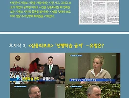 자료/이달의좋은기사·전북민주언론상 (267) 썸네일형 리스트형 [시민이 뽑는 좋은 기사상] 2014년 4월 수상자! 시민이 뽑는 좋은 기사상 _ 4월 수상자! JTV 김철 기자의 '2년째 자본잠식 면허취소 가능'기사입니다. 전북민주언론시민연합은 매달 좋은 기사를 선정하고 이후 시민의 의견을 100% 반영하는 ‘시민이 뽑은 좋은 기사상’을 수여합니다. 지역의 좋은 기사를 적극적으로 시민께 알리고 지역 언론이 타성에 젖은 기사, 시민과 유리된 기사를 쓰지 않도록 감시하는 것이 목적입니다. 시민들이 지역 언론에 관심을 갖는 만큼 지역 언론도 더욱 좋은 기사를 쓸 거라고 기대합니다. 4월 시민이 뽑은 좋은 기사 후보작은 전북일보‧전북CBS가 공동기획한 [선택 6.4 후보자 공약 검증- 전북도지사]와 JTV의 ‘2년째 자본잠식 면허취소 가능’ 기사 총 2개로 그 중 JTV의 기사가 선정됐습니다. 투표기간은 4월 31일부터 5월.. 2014년 4월의 좋은 기사를 선정해주세요 :) "4월의 좋은 기사를 선정해 주세요^^ - 5월 9일까지 댓글로 추천 받습니다. 후보작 1. 전북일보‧전북CBS [선택 6.4 후보자 공약 검증- 전북도지사] 유권자의 판단을 도운 좋은 정책검증 기획보도 ※ 추천이유 1. 분야별 정책 구체적 검증 시도 전북일보와 전북CBS의 [선택 6.4 후보자 공약 검증] 기획보도는 이번 선거에서 쟁점으로 뽑히는 내용을 보도하면서 각 후보의 입장만을 단순 중계하는데 그치고 있지 않고 분야별 전문가를 섭외하여 후보간 정책 차이, 타당성 등을 분석하고 있다. [선택 6.4 후보자 공약 검증]은 후보자의 삶과 이력에 초점을 맞추고 있는 타 매체와 달리 후보자들의 정책이나 공약을 분야별로 세세하게 나누고 있다. 핵심공약과 슬로건, 지역발전 전략, 농업정책, 교통복지, 민생‧일.. 시민이 뽑은 3월의 좋은 기사상 수상 결과 안내 전북민주언론시민연합은 매달 좋은 기사를 선정하고 이후 시민의 의견을 100% 반영하는 ‘시민이 뽑은 좋은 기사상’을 수여합니다. 지역의 좋은 기사를 적극적으로 시민께 알리고 지역 언론이 타성에 젖은 기사, 시민과 유리된 기사를 쓰지 않도록 감시하는 것이 목적입니다. 시민들이 지역 언론에 관심을 갖는 만큼 지역 언론도 더욱 좋은 기사를 쓸 거라고 기대합니다. 3월 시민이 뽑은 좋은 기사 후보작은 ‘새전북신문 3월 28일자 ’ ‘전북일보 2월 12일~3월 20일까지 연속보도 ’ ‘KBS 전주총국 3월 14일 ’ ‘JTV 3월 25일 ’ 총 4개로 그 중 새전북신문의 기사가 선정됐습니다. 투표 기간은 3월 31일부터 4월 4일까지입니다. 새전북신문의 는 선거를 앞두고 전화여론조사에서 여론왜곡이 일어나는 원인을.. 2월의 좋은 기사 선정) “유룡”기자의 <영세 토종닭 농장 도산 위기> 2월에 선정된 좋은 기사는 전주MBC “유룡”기자의 입니다. 축하드립니다^^ 영세 토종닭 농장 도산 위기 영세 토종닭 농장 도산 위기(R)/전주 기자 : 유룡 | 일자 : 2014년 2월 10일 사료 공급이 끊긴 토종닭 농가가 닭을 들판에 풀어놓는 시위를 벌였습니다. AI가 덮칠 때마다 영세농들이 사료 대금을 갚지 못하고 도산을 반복하는 가운데 대기업이 양계 시장의 90% 이상을 장악했습니다. 유룡 기자의 보도입니다. 김제의 한 토종닭 농장, 사육장 문을 열어 닭을 들판으로 내몹니다. 알곡은 커녕 볏짚도 없는 들판에 갑자기 나앉은 닭은 당황한 듯 꼼짝을 못합니다. 사료는 바닥났는데 사료 공급이 중단돼 굶겨 죽일 바에야 풀어놓겠다는 심산입니다. 사료 공급을 안해주니까..오늘 밤이 고비.. 닭고기 소비가 줄.. 2014년 3월의 좋은 기사를 선정해주세요 :) 3월의 좋은 기사를 선정해주세요 - 전북민언련이 3월의 좋은 기사로 선정한 구체적인 이유를 꼼꼼히 확인해보세요 새전북신문, 전화착신 여론조사에서 제외해야 ※ 추천 이유 1. 여론조사에서 전화 착신 전환을 제외해야 한다는 내용을 지역사회 의제로 설정. 전화착신 문제는 전북도민일보에서 3월 4일 가장 먼저 거론하였으나 경선 룰 싸움 중 “여론조사 공정성 확보 차원에서 ‘착신전화 배제론’이 급부상하고 있다”는 후보간 공방 및 세부 룰 싸움 중 안건 정도로만 다뤘음. 2. 12일 의제 설정 후 전화착신이 여론조사를 왜곡하는 과정을 근거 있게 전달함으로써 SNS상에서 전화착신을 금지시켜야 한다는 여론을 일으킴. 3. 28일자 보도 이후 전주시장 후보들의 클린선거 공동선언 제안을 이끌어냈으며 지역 언론은 31일에서.. “ 2월의 좋은 기사를 선정해 주세요” “ 2월의 좋은 기사를 선정해 주세요” 시민님, 당황하셨어요? 지역에 이렇게 좋은 기사가 많아서~^^ 2월 부터 찾아갑니다. 묻힐뻔한! 지나칠뻔한! 지역의 숨은 좋은 기사들을 소개합니다.... 어떻게 : 후보작 번호를 댓글로 달아주세요~ 기간 : 2014년 3월 4일까지 2013 전북민주언론상 시상식 장면 수상자 전체 사진 여는 공연 _ 이상한 계절 장낙인 대표 심사평 김환표 사무처장 진행 전북민주언론상_ KBS전주방송총국 특별취재팀 (김진희, 신재복, 오중호, 안광석). [2천억 짜리 엉터리 하수관로 지하 대해부] 전북민주언론상_ 특별상_ 김철, 하원호 기자 전북민주언론상_ 특별상 _ 문주현 참소리 기자 전체 사진 2013 전북민주언론상 시상식 장면 2013 