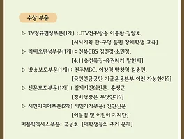 1. 제정 취지 전북민주언론시민연합은 언론의 민주화와 개혁에 부합하는 지역 언론의 상을 제시하고 사회적 공기로서의 언론의 사명을 다하도록 독려하며, 현업 언론인들의 사기를 진작하기 위한 목적으로 1년간의 지역신문, 방송부문의 우수보도 및 프로그램을 선정, 시상함. 2. 선정 절차 및 선정위원회 구성 공모(11월 23일까지) → 선정위원회 심사(12월 10일) → 시상(12월 21일) 3. 추천기관 신문․방송사업자, 언론유관단체, 일반시민 등 4. 추천대상 (1) TV 정규편성부문 : 교양(다큐멘터리, 문화예술, 생활정보, 교육 등) 오락(드라마, 코미디, 토크, 쇼 등) (2) TV 특집편성부문 : 특집편성 (3) 라디오 편성부문 : 다큐멘터리, 문화예술, 생활정보, 시사프로그램 등 (4) 방송 보도부문..