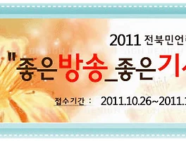 2011 올해의 좋은방송, 좋은기사 1. 제정 취지 전북민주언론시민연합은 언론의 민주화와 개혁에 부합하는 지역 언론의 상을 제시하고 사회적 공기로서의 언론의 사명을 다하도록 독려하며, 현업 언론인들의 사기를 진작하기 위한 목적으로 1년간의 지역신문, 방송부문의 우수보도 및 프로그램을 선정, 시상함. 2. 선정 절차 및 선정위원회 구성 공모(11월 30일까지) → 선정위원회 심사(12월 10일) → 시상(12월 23일) 3. 추천기관 신문․방송사업자, 언론유관단체, 일반시민 등 4. 추천대상 (1) TV 정규편성부문 : 교양(다큐멘터리, 문화예술, 생활정보, 교육 등) 오락(드라마, 코미디, 토크, 쇼 등) (2) TV 특별편성부문 : 특별편성 (3) 라디오 편성부문 : 다큐멘터리, 문화예술, 생활정보, ..