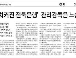 지역언론브리핑 (2014/12/17) 1) JB금융지주, 사명과 CI 변경추진 통해 전북 지우려 하나? - 전주MBC·새전북신문, 사명과 CI 변경이 갖는 의미 강조 반면 - 전북도민일보·전북일보·전라일보 6,7,8면에 배치, JTV, 전주KBS 단신보도 1) JB금융지주, 사명과 CI 변경추진 통해 전북 지우려 하나? - 전주MBC·새전북신문, 사명과 CI 변경이 갖는 의미 강조 반면 - 전북도민일보·전북일보·전라일보 6,7,8면에 배치, JTV, 전주KBS 단신보도 전북은행 노동조합이 12월 16일 기자회견을 진행했다. JB금융지주가 “JB‘를 제외한 사명과 CI로 변경을 추진하려고 한다는 것이다. 전북은행 노조 인수위는 "JB금융지주의 뿌리인 전북은행은 1969년 '도민 1주 갖기' 운동으로 설립된..