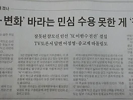 전체보기 (5124) 썸네일형 리스트형 세월호 진상조사 촉구 서명 및 전주시내버스 문제 해결과 신성여객 면허 취소 촉구 서명 안내 안내1. 와 세월호 범국민대책위가 대국민 서명을 받고 있습니다. 전북에서도 매 주 토요일 4시에 경기전 앞에서 서명을 받고 있습니다. 서명지 이미지와 한글 파일을 첨부하니 필요한 단체나 개인들이 널리 활용해 서명해 주시면 감사하겠습니다. 서명한 내용은 전북민언련이나 전북환경운동연합으로 보내주시면 됩니다. - 정부에 촉구합니다. 1. 정부는 실종자를 조속히 구조해 주십시오. 2. 정부는 투명하고 철저한 진상조사를 해주십시오. - 국민 여러분들께 호소합니다. 1. 조속한 실종자 구조를 위해 함께 외쳐 주십시오. 2. 투명하고 철저한 사고 진상 규명을 위해 함께 행동해 주십시오. 3. 저희의 목적은 “안전한 나라”를 만드는 것입니다. (세월호 사고 희생자/실종자/생존자 가족 대책위원회) ▷ 전북지역 서명 운동.. 지역언론브리핑) 전주 완주 통합청사 설계 예산낭비- JTV 행정처벌 없는 단체장에 대한 책임 필요하다고 보도 (2014/06/16) 지역언론브리핑 (2014/06/16) 1) 전주 완주 통합청사 설계 예산낭비 - JTV, 단체장도 행정적 처벌 필요하다고 문제제기 2) 단체장 당선자 15명 중 8명, 선거법 위반 혐의 부안군 기초의원 당선자 중 절반이 공직선거법 위반 혐의 3) 전주완산여고, 붕괴 우려 4) 국제공항 건설, 송하진 당선자가 풀어야 1) 전주 완주 통합청사 설계 예산낭비 - JTV, 단체장도 행정적 처벌 필요하다고 문제제기 감사원이 전주·완주 통합이 관련 절차를 어기며 무리하게 추진되면서 수십억 원의 예산마저 낭비했다며 완주군 공무원 3명의 징계를 요구했다. 전북CBS 5월 21일 자에 따르면 “감사원은 주민투표로 완주군의 주민의사가 확인되지 않았고 군 의회의 반대 의견 채택에도 불구하고 통합 청사를 완주에 두기로 하고 .. 2014 어린이 방송캠프 접수 (일시 : 2014년 7월 30일 - 8월 1일) : 접수 마감 신청하실 분들은 첨부파일 작성하셔서 전북민언련 이메일(malhara21@hanmail.net)으로 보내주세요. 2013년 어린이 방송캠프 스케치 동영상 입니다 ^^ 세부 일정 - 7월 30일 수요일 시간 프로그램 세부내용 09:30 집결 전주 시청 앞 민원실 집결 10:00 출발 버스로 단체출발 11:30 도착/마음열기 ■ 이름표 놀이와 인디언식 이름 짓기 12:30 점심식사 식당 13:30 입학식 본강당 (조별소개) 14:00 미디어교육 ■ 미디어뭘까? 이야기 찾기 15:30 간식 즐거운 간식시간 (수박) 16:00 체험학습 ■ 맑은 물 수생탐사 17:30 저녁식사 식당 19:00 촬영교육 ■ 촬영교육, 스마트폰으로 촬영하는 방법 알기 20:30 기획교육 ■ 조별로 기획안 및 시나리오 쓰기 간식 실습 .. 지역언론브리핑) 6.4 지방선거 그 後 (2014/06/13) 지역언론브리핑) 6.4 지방선거 그 後 - 각 언론사, 지방선거 이후 분석해 6.4 지방선거가 지난 지 9일이 지났다. 지역 언론은 선거의 의미와 과제를 짚어냈다. JTV는 선거기간 언론사의 부적절한 행위를 문제삼았다. 12일 8뉴스 기사는 “일부 지역 언론사가 후보자에게 유세차량을 특정업체에서 구입하도록 압력을 넣”었다고 전했다. 기사에 따르면 수억 원을 투자했지만 유세차량을 팔지 못해 극심한 경영난을 겪던 선거 유세차량을 만드는 모 광고대행사 대표가 지난 달 스스로 목숨을 끊었다. 그 이유는 모 언론사가 자신과 관련된 업체 차량을 후보에게 사게 해서다. 기자는 모 광고대행사 관계자의 입을 빌려 4년 전 선거에서도 이런 일이 있었다며 후보들이 언론사에 의해 불이익을 당할까봐 유세차량을 ‘사용 할 수밖에.. 지역언론브리핑) 송하진 당선인 인적교체, 전북일보 인사교체 당위성 주장 (2014/06/12) 지역언론브리핑 (2014/06/12) 1) 송하진 당선인 인적교체, 전북일보 인사교체 당위성 주장 2) 새전북신문, 무소속 후보들의 선거 행보는 ‘시종일관 네거티브’라고 평가 3) 전북일보, 김완주 지사 김제공항 부지 공식화에 민선 6기에 부담이라 지적해 1) 송하진 당선인 인적교체, 전북일보 인사교체 당위성 주장 전북도 산하의 공기업 출연기관장과 임기제 공무원 등의 인사 교체 등이 진행될 것으로 예상되는 가운데 송하진 도지사 당선인은 지난 9일 기자간담회에서 “정해진 임기가 있다” “더 잘 알아서 처신할 것으로 보인다”고 했다. 지역언론은 인적 교체가 불가피해 보인다는 전망을 내놓으며 관심 있게 사안을 다뤘다. 가장 눈에 띄는 곳은 전북일보다. 전북일보는 관련 기사 전반에서 민선6기 송하진 도정에 대한.. [공영방송 낙하산 사장 방지와 지배구조 개선 입법을 위한 토론회] 길환영 방지법, 어떻게 만들어야 하나? [공영방송 낙하산 사장 방지와 지배구조 개선 입법을 위한 토론회] 길환영 방지법, 어떻게 만들어야 하나? - 지난 5일 이사회가 길환영 사장을 해임하면서 KBS 사태가 큰 고비를 넘겼습니다. 하지만 모두가 말하듯이 KBS 정상화는 이제부터 시작입니다. ‘길환영 방지법’을 만들고 KBS 지배구조를 개선하여 제2의 길환영 사태를 막는 근본적인 해법을 찾아야만 합니다. - 현재 국회에는 공영방송 지배구조를 개선하는 내용의 법안들이 여러 개 계류되어 있습니다. 여야는 방송공정성특별